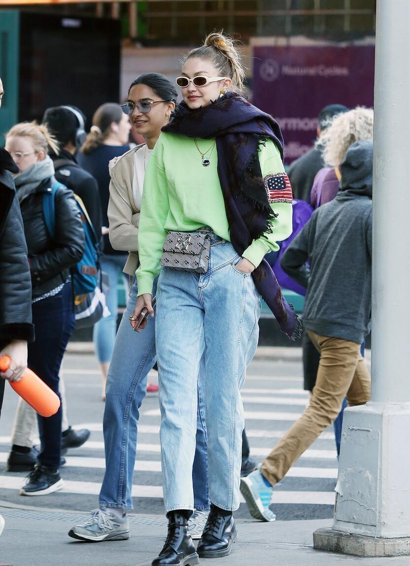 • 腰包+卫衣牛仔裤