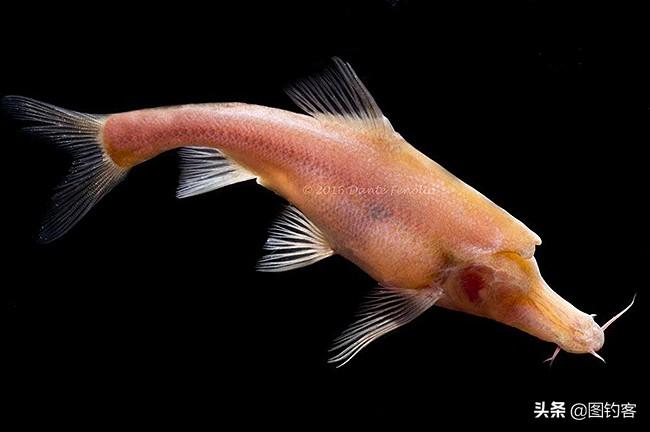 由于生活在暗无天日的洞穴中,它们的眼睛退化消失,头部只剩下扁而长的嘴,故而得名。