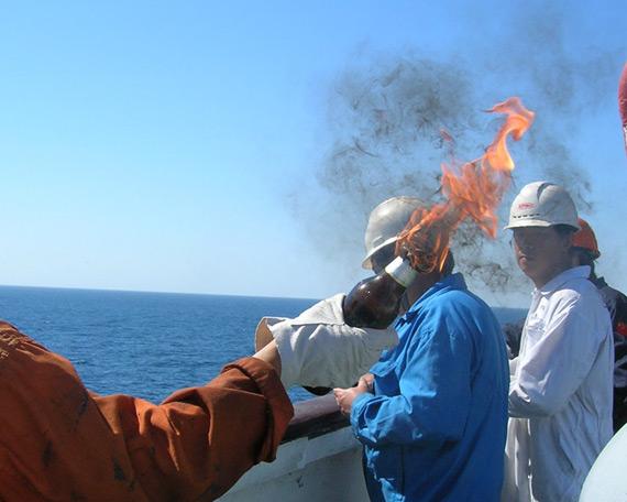 其实,就在遭遇海盗十多天前,振华4号刚刚进行了一次反海盗演习。大家已经明确了,海盗在什么位置,专门采取什么措施。有人负责做燃烧瓶,有人专门负责扔,演习的时候真的把燃烧瓶投到了甲板上,观察效果怎么样。