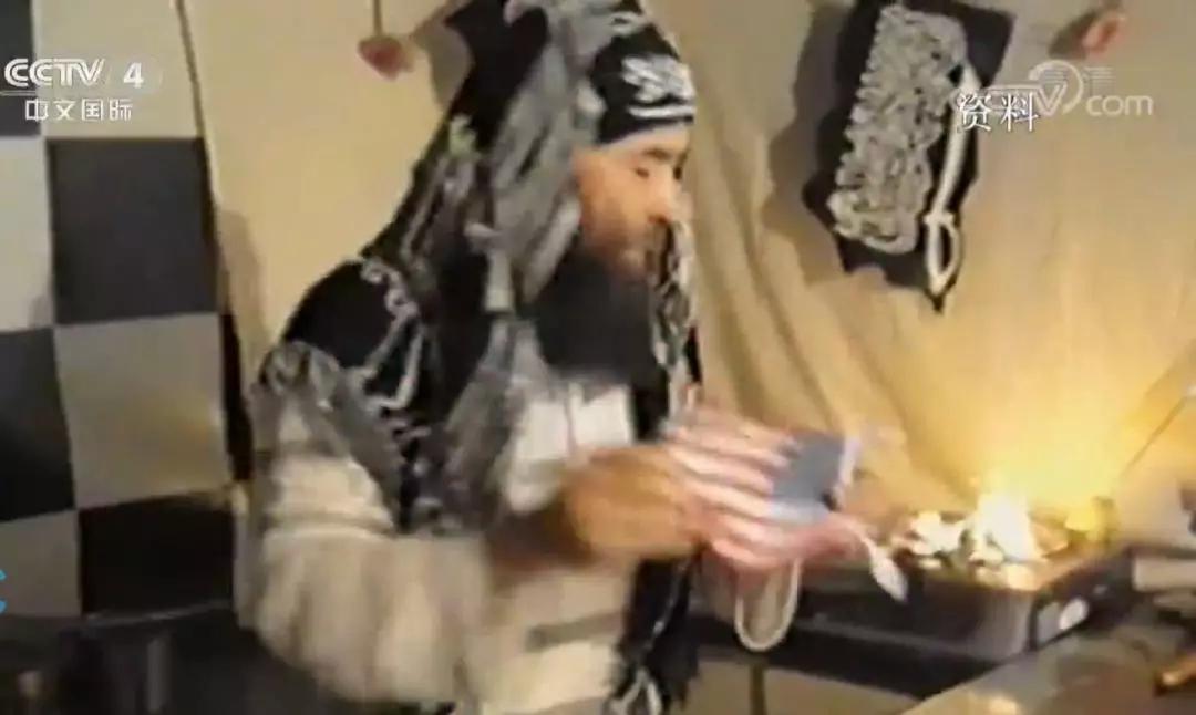 画面显示,艾山焚烧了中国、美国等国国旗。