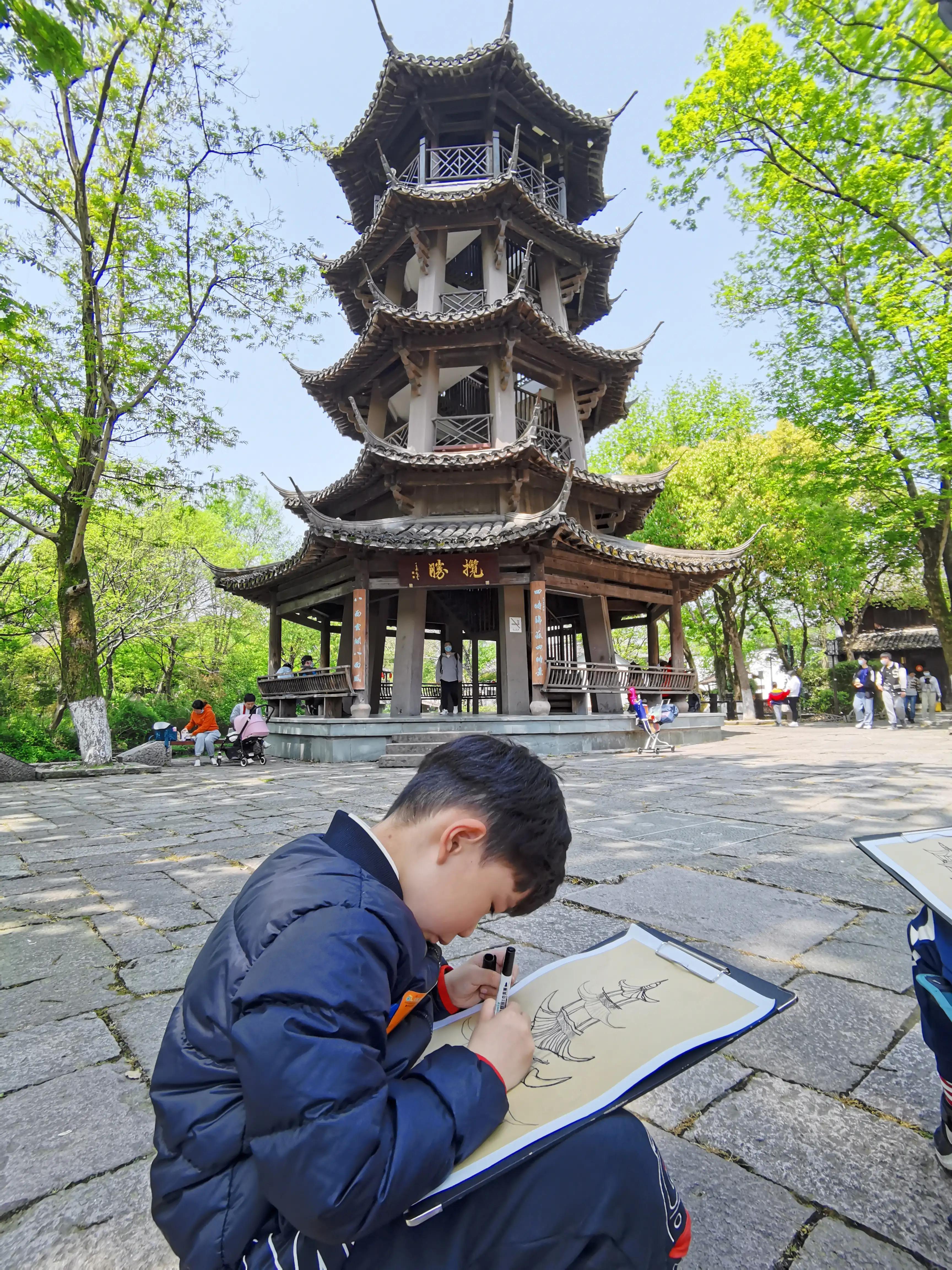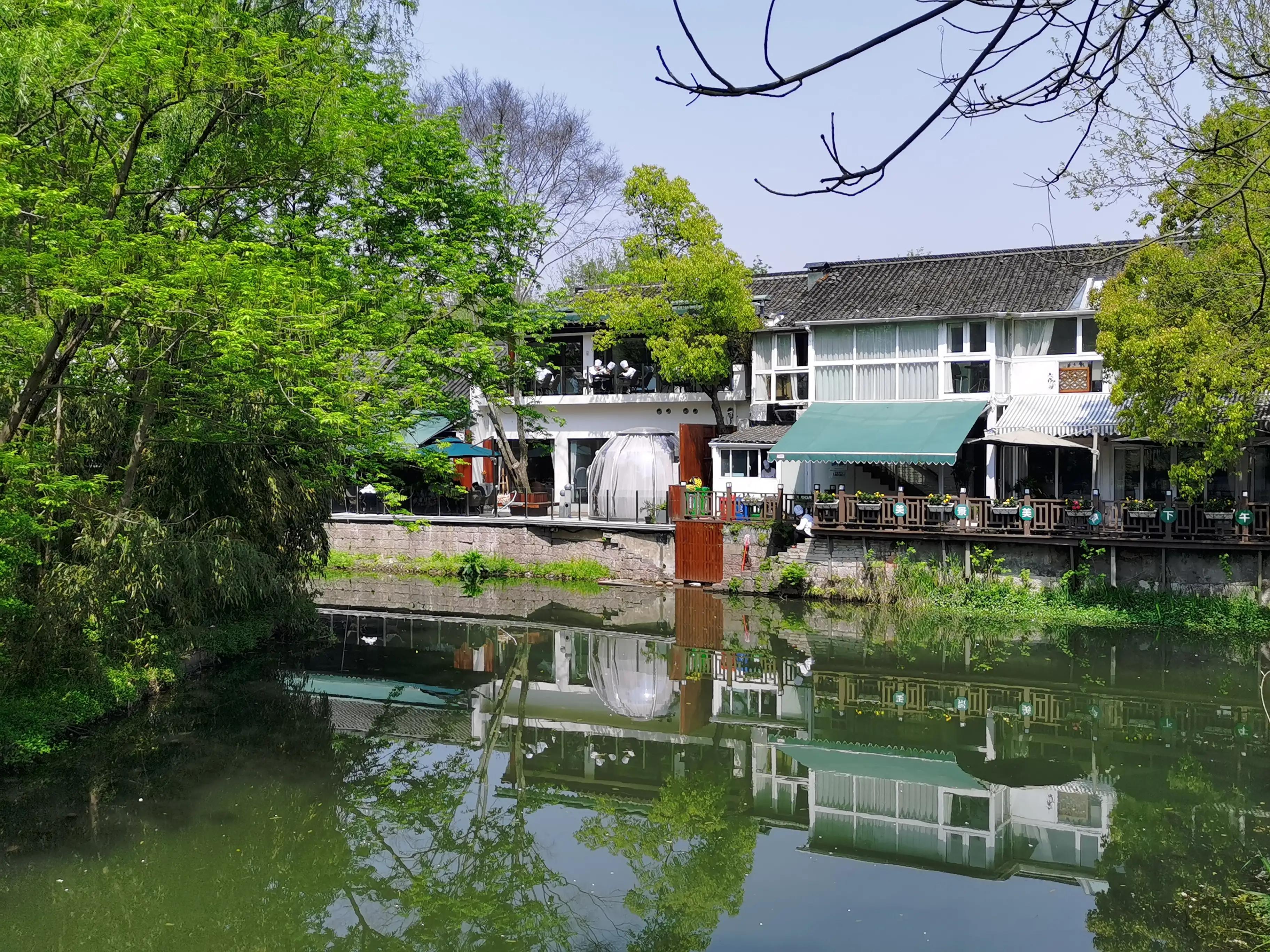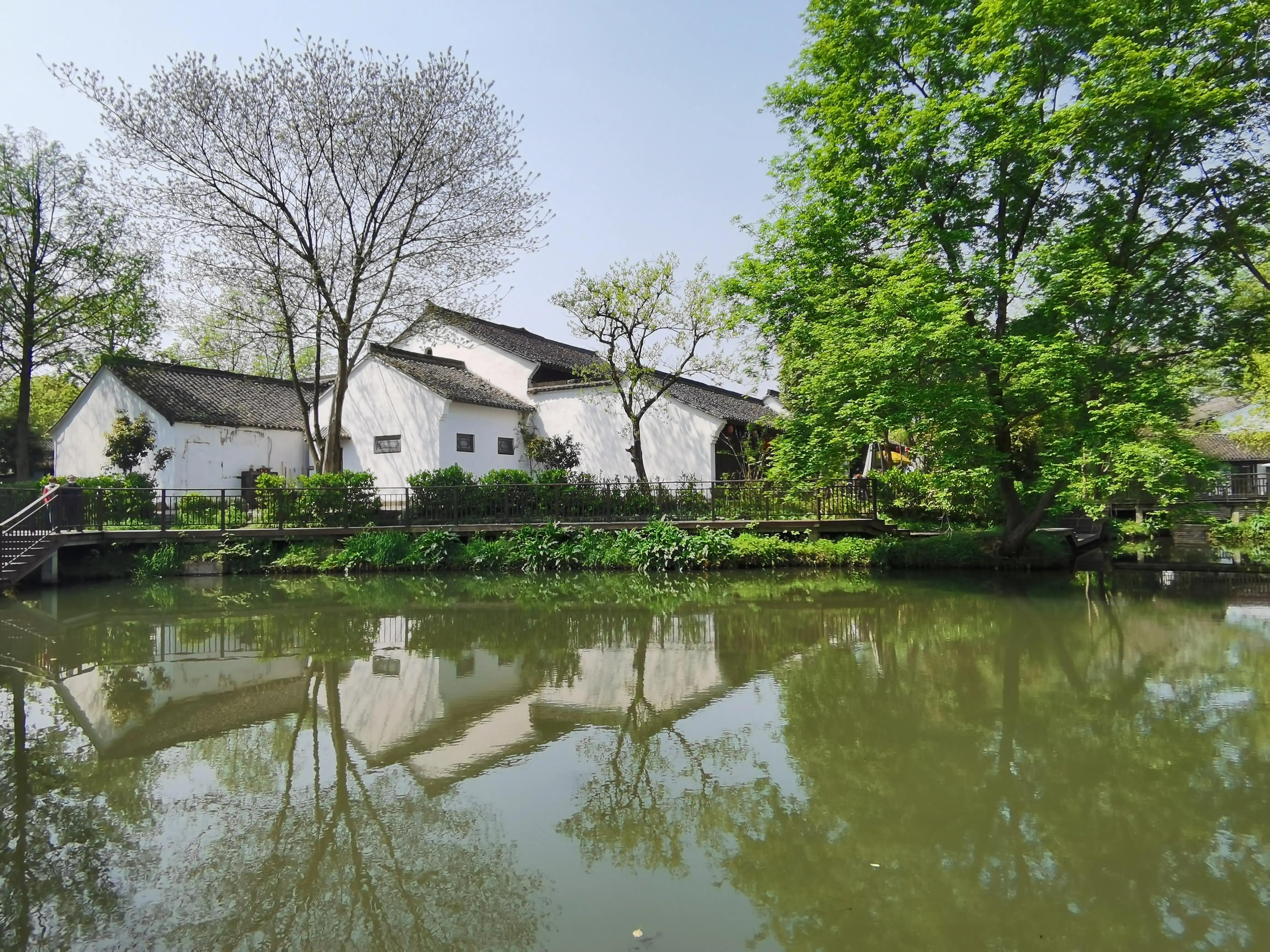民宿房间不大,装修甚是简朴,倒还算干净。主要是位置好,这里其实已经是西溪景区了,只是还没有进大门。旁边有水浒作者施耐庵的纪念馆,据说他曾在这里生活过很多年。周边风景如画,小桥溪水池塘,绿树青瓦白墙,相映成趣。偶尔有水鸟在水面飞过,带起粼粼波纹。这里还有一个氦气球观景点,可以飞到高空,俯瞰西溪湿地全景。也许是周末的原因,不少学生到这里写生,人与景完美结合,又是一幅带着浓浓生活气息的画卷。
