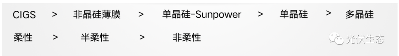 太阳能电池分为硅(silicon)太阳能电池(单晶硅、多晶硅、sunpower)、非晶体硅(cigs)等,目前使用最多的是高效能单晶硅,转化效率在22%—25%之间。